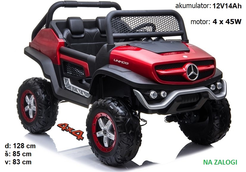 Rdeč avto na akumulator Mercedes Unimog XL dvosed