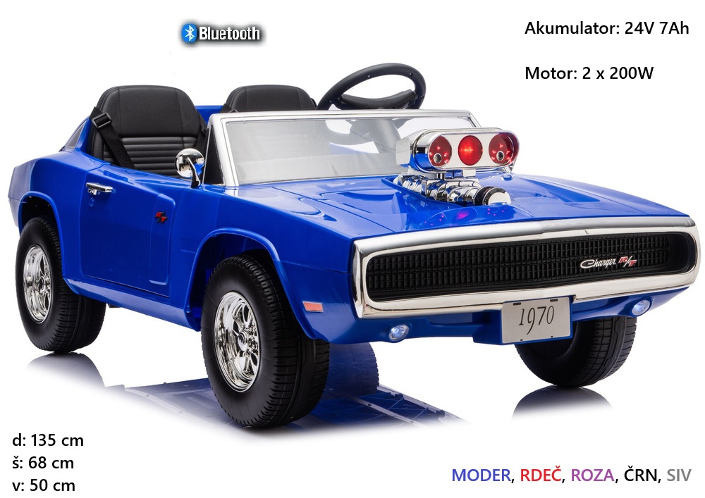 Predstavljamo vam uradno licenciran Dodge Charger R/T (DLS-K12), ki bo z izjemno močno 24V baterijo in agresivnim, a hkrati elegantnim dizajnom, na dvorišču ukradel vse poglede. Izberite svojo najljubšo barvo – od drzne rdeče in modre, do elegantne sive, črne ali prečudovite roza. Ta otroški električni avto združuje kultni videz klasičnega "Muscle Car" avtomobila z najsodobnejšo tehnologijo za maksimalno varnost in vrhunsko zabavo.