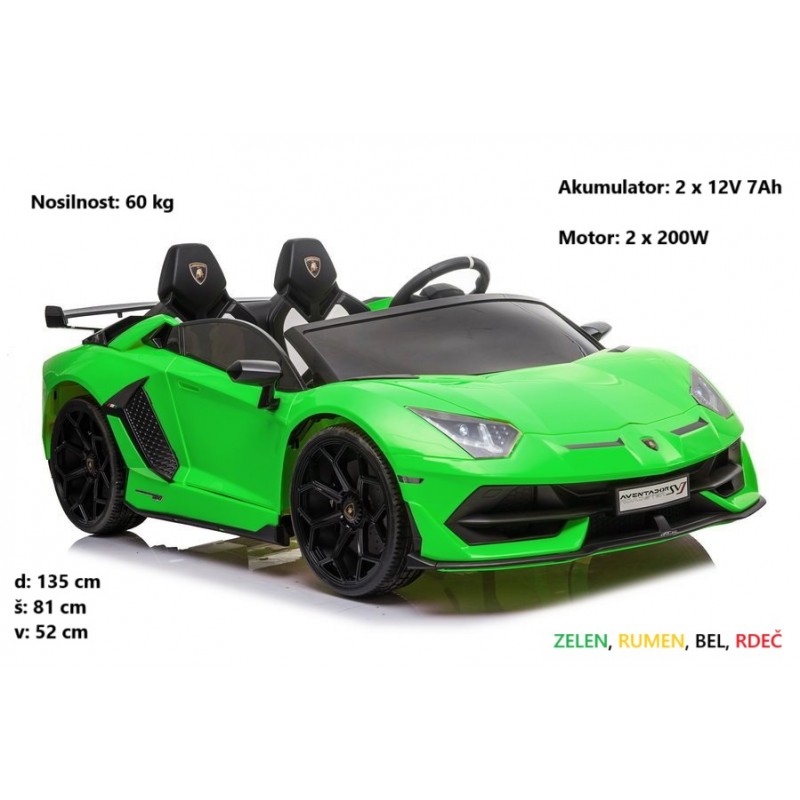 Otroški avto Lamborghini Aventador SX2028 XXL, 15 km/h; 400W na akumulator 24V in daljinsko vodenje.