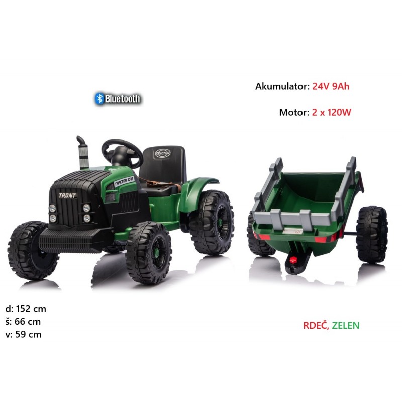 Traktor 24V s prikolico CH9959B (zelen, rdeč) 240W
