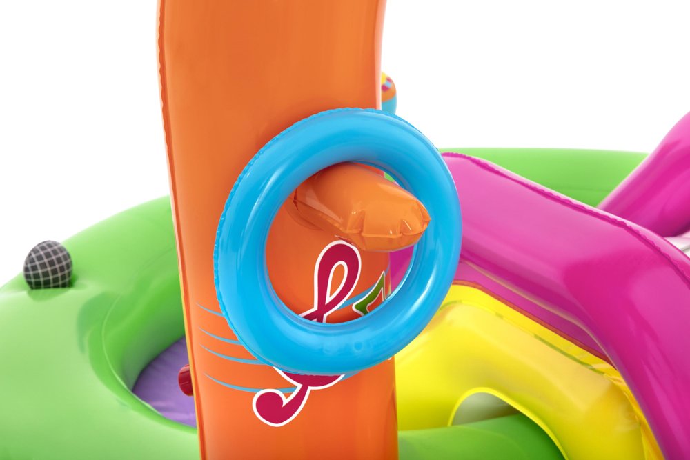 Bi radi svojemu otroku omogočili nepozabno zabavo v zasebnosti svojega vrta? Napihljivo igrišče ga bo spremenilo v pravi center zabave za vašega otroka. Bazen z napihljivimi atrakcijami bo zagotovo razveselil vašega malčka in postal njegov najljubši kraj za igro. Bazen je izdelan iz mehkega, a trpežnega materiala in je kar se da varen za najmlajše otroke. Glavni zanimivosti sta napihljiv tobogan in lok, iz katerega bo pri priklopu na vrtno cev tekla voda. Igrišče lahko uporablja več otrok hkrati, zahvaljujoč številnim zanimivostim bo vsak našel nekaj zase.
